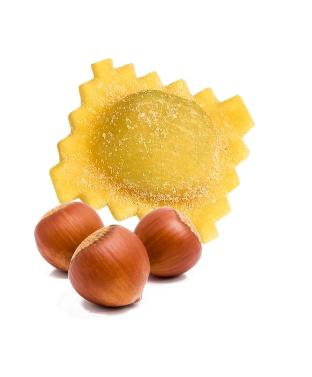 Blätterteig (55%): Hartweizengriess, Weichweizenmehl, EIER (20% auf die Nudeln; 11% auf die Gesamtmenge), Wasser, Salz. Füllung (45%): gebräuntes Fleisch (Schwein, Rind, Rotwein, Karotten, Zwiebeln, SELLERIE, Salz, Kräuter, Sonnenblumenöl, Gewürze), Rohschinken (Schweinefleisch, Salz, Konservierungsstoff: E252), Mortadella (Schweinefleisch, Schweinepansen .) , Salz, Zucker, Gewürze, Aromen, Knoblauch, Antioxidationsmittel: E300, Konservierungsstoff: E250), Paniermehl (Weichweizenmehl Typ "0", Bierhefe, Salz), Käse Grana Padano gU (MILCH, Salz, Konservierungsstoff: EGG-Lysozym) , Piemont HASELNUSS IGP, MagerMILCHpulver, Pflanzenfaser, EIER, Salz, Gewürze, Konservierungsstoff: E200.Gefüllt mit Fleisch, Grana Padano DOP und Piemont Haselnüssen IGP.