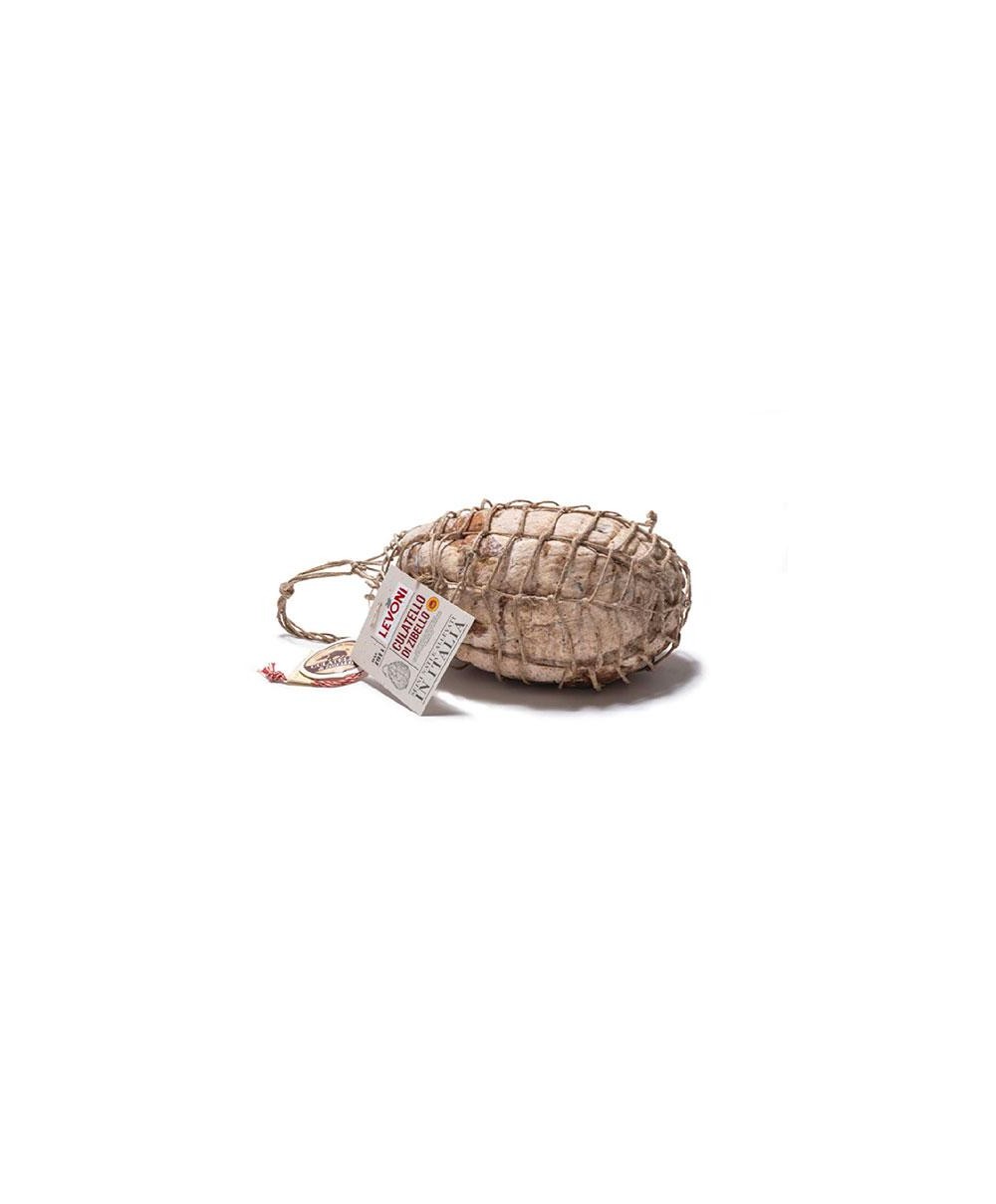 Der im Seil gebundene Culatello di Zibello g.U. von Levoni, ist ein gepökeltes Fleisch, das aus Fleisch von in Italien geborenen und aufgewachsenen Schweinen hergestellt wird und über 12 Monate mit Meersalz und Pfeffer gereift wird. Es ist der edelste Teil der Schweinekeule, mit einem feinen und abgerundeten Geruch, mit entfernten Noten von Trockenfrüchten. Der Geschmack umhüllt von Fülle und einzigartiger aromatischer Komplexität. Es wird nach den Spezifikationen des Konsortiums von Culatello di Zibello g.U. hergestellt und von Hand entbeint und getrimmt sowie der Schwarte entzogen. Der Duft ist intensiv und charakteristisch, während der Geschmack stark ist.Der Culatello di Zibello g.U. von Levoni wird hier im 4,5 kg Format verkauft. Nach dem Öffnen muss es im Kühlschrank aufbewahrt und innerhalb weniger Tage verbraucht werden.Bestellen Sie jetzt Levonis Culatello di Zibello g.U.: NATURALEITALIANO verpflichtet sich, das Produkt innerhalb von 48 Stunden in die ganze Welt zu liefern.