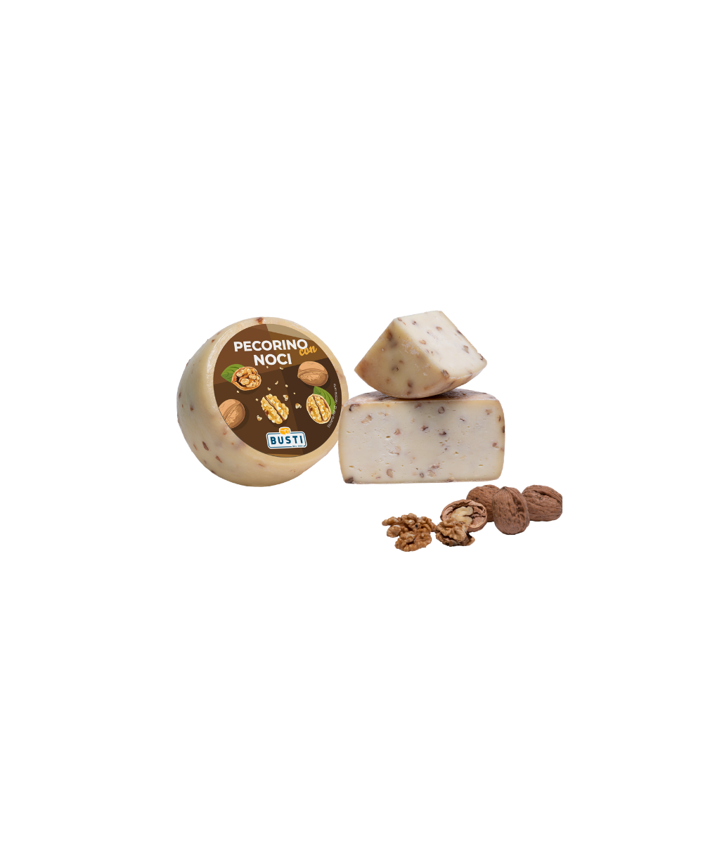 Der von Busti Formaggi hergestellte Die Walnuss Käse ist ein Schnittkäse aus pasteurisierter Schafsmilch. Was diesen Pecorino einzigartig und unverwechselbar macht, ist die Zugabe von Walnüssen zu den Nudeln, wodurch ein wirklich schmackhaftes und besonderes Ergebnis erzielt wird. Die handgehackten Walnusskerne, die aus Sorrento stammen oder auf jeden Fall immer nationalen Ursprungs sind, werden den Nudeln direkt während der Verarbeitung zugesetzt. Die ungenießbare Rinde hat eine rosa Farbe und der elastische Teig zeichnet sich durch das Vorhandensein von gehackten Walnüssen aus. Hier wird er in der 1-kg-Form verkauft, muss innerhalb von 2 Monaten verbraucht und im Kühlschrank aufbewahrt werden. Er wird 1 Monat lang reifen gelassen. Er ist ideal, um auf einem Schneidebrett serviert zu werden, begleitet von anderen Käsesorten, Aufschnitt, Aufschnitt, geröstetem Brot und Honig oder Marmelade. Zum krönenden Abschluss ein gutes Glas Rotwein. Bestellen Sie jetzt den Nusskäse von Busti Formaggi: NATURALEITALIANO verpflichtet sich, das Produkt innerhalb von 48 Stunden in die ganze Welt zu liefern.