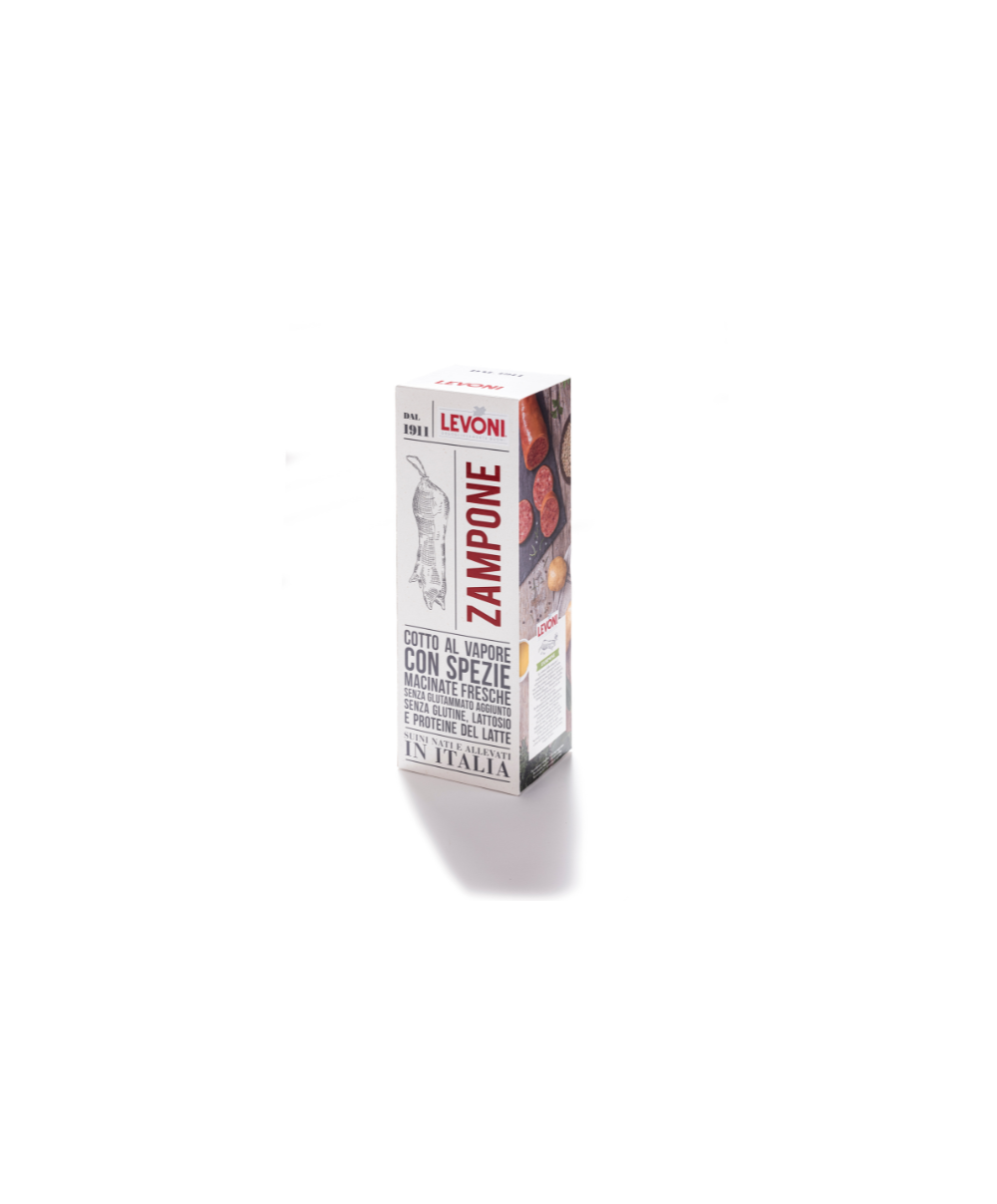 Fleisch von in Italien geborenen und aufgezogenen Schweinen. Beim ersten Riechen bringen Sie die olfaktorischen Anregungen zurück in die Vergangenheit. Die Gewürze und die Zubereitung des Fleisches fangen die Noten der Kindheit ein: die besondere und unverwechselbare Konsistenz, das traditionell gehackte und aromatisierte Fleisch für einen appetitlichen und köstlichen Klassiker. Völlig natürliches Aroma nach einem exklusiven Rezept von Levoni. Hülle: Vorderbein vom Schwein. Vor dem Verpacken vorgekocht. Ohne Milchproteine. Ohne Zusatz von Glutamat. Zubereitungstipps: Füllen Sie einen Topf mit Wasser und tauchen Sie den verschlossenen Beutel hinein. Aufkochen. 30 Minuten kochen lassen. Vor dem Servieren die im Beutel entstandene Flüssigkeit abtropfen lassen.