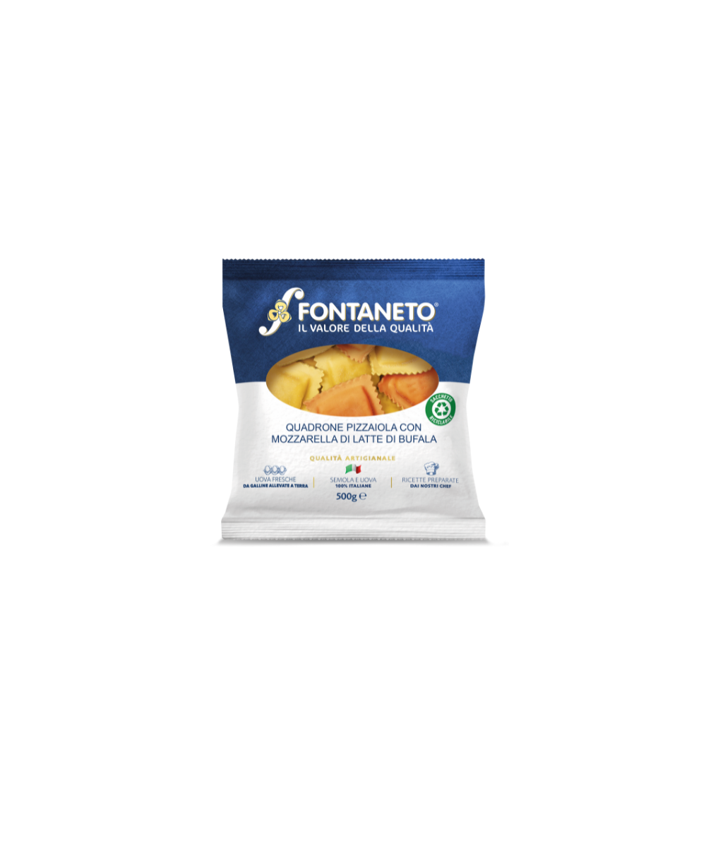 FONTANETO Quadrone Pizzaiola mit Büffelmozzarella 4 x 500 g (38~ x 13 g 500 g) - RLZ 12 Tage - 5 Min. Kochzeit