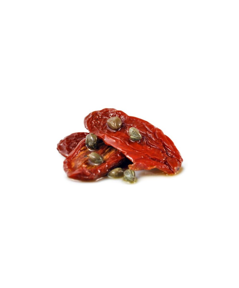 The Dried Tomatoes of the Marche made by Castellino are dried tomatoes seasoned with capers and spices in oil. These are long Italian tomatoes, dried in the sun and processed according to the ancient traditional recipe. All the unique flavor of the Mediterranean sun, therefore, is present in these roasted tomatoes and then flavored with herbs, oil and capers. They represent a delicious solution for original and tasty appetizers, but they can also be used as an ingredient for recipes with a strong taste or served as a side dish. For example, they can be served on a slice of homemade bread, inserted in salads or as a side dish for meat or fish. The product is sold here in the 1.9 kg format, in a package suitable for displaying directly on the counter. They must be consumed within 6 months and, once opened, they must be kept in the refrigerator. Order the dried tomatoes of the Marche made by Medusa now: NATURALEITALIANO will undertake to deliver the product within 48 hours to all over the world.