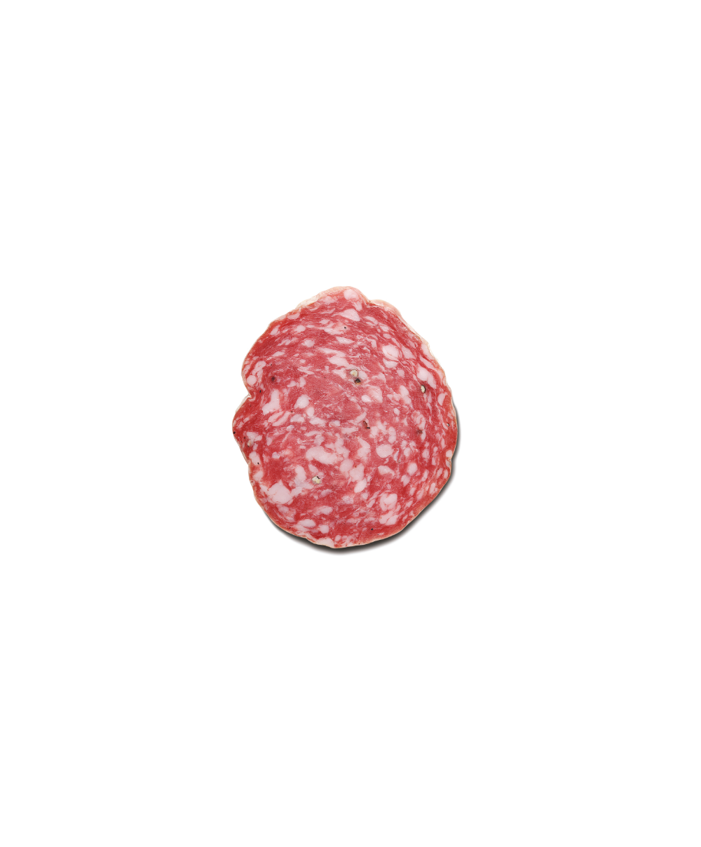 Meat from pigs born and raised in Italy. A popular and elegant classic at the same time. Soft on the nose, it expands lively in the mouth with exuberant surprises of crushed black pepper. Completely natural flavoring according to an exclusive Levoni recipe. Inedible casing, remove before consumption. Medium grain. Lactose free, gluten free.
