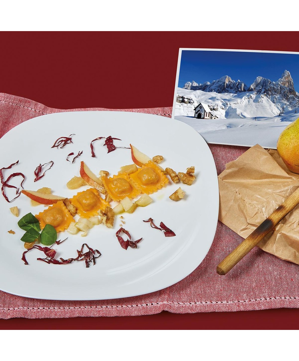Des ingrédients authentiques et sélectionnés de la cuisine méditerranéenne comme le speck, le radicchio rouge, le porc, la ricotta, la semoule de blé dur, les œufs et bien plus encore font de ces raviolis un must de votre menu.