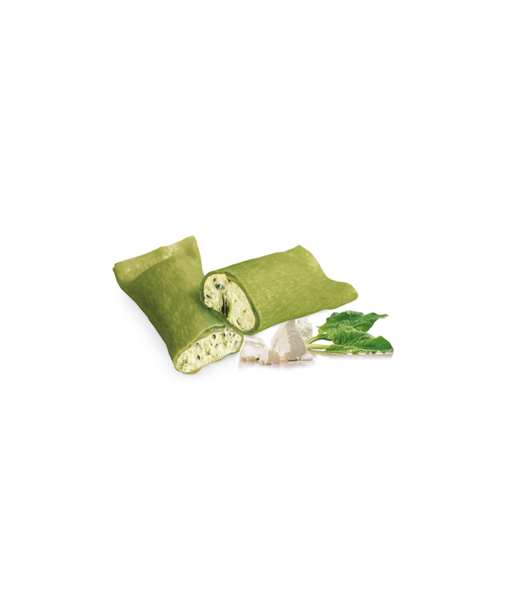 Les cannellonis au ricotta et épinards produits par Fontaneto sont des raviolis particulièrement grands et cylindriques aux œufs frais, farcis à la main, avec une pâte cylindrique et vert ferme au toucher et à mâcher. Leur garniture a un goût incomparable de ricotta et épinards. Convient à ceux qui veulent préparer un premier plat original et savoureux. Ici, ils sont vendus en colis de 1 kg sous atmosphère protectrice. Conserver entre +4° et +6°C. Après ouverture de l'emballage, consommer le produit dans les 3 jours. Ne pas percer l'emballage. Temps de cuisson : au four avec de l'eau et du beurre pendant 15 minutes à 200 degrés ou avec de la béchamel pendant 30 minutes à 180 degrés (comme une lasagne).