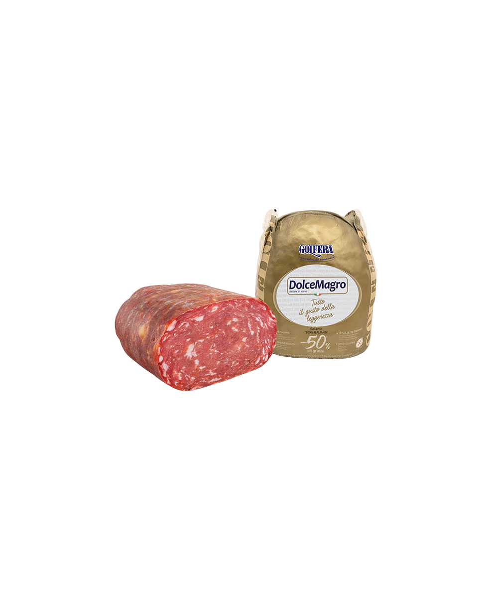 Il Salame Dolce Magro Naturale Golfera è preparato esclusivamente con i tagli più magri di carni di suino fresche.La qualità più alta a garanzia di leggerezza e digeribilità con un sapore intenso e delizioso in meno del 14% di grassi. DolceMagro è ideale per i consumatori più esigenti ed attenti ai valori nutrizionali. Presentazione sottovuoto. Prodotto in Emilia Romagna, preparato con sale iodato. Basso contenuto di grassi e senza gluitine. Presentazione sottovuoto, 1,6 Kg. Prodotto in Emilia Romagna, preparato con sale iodato. Basso contenuto di grassi e senza glutine.