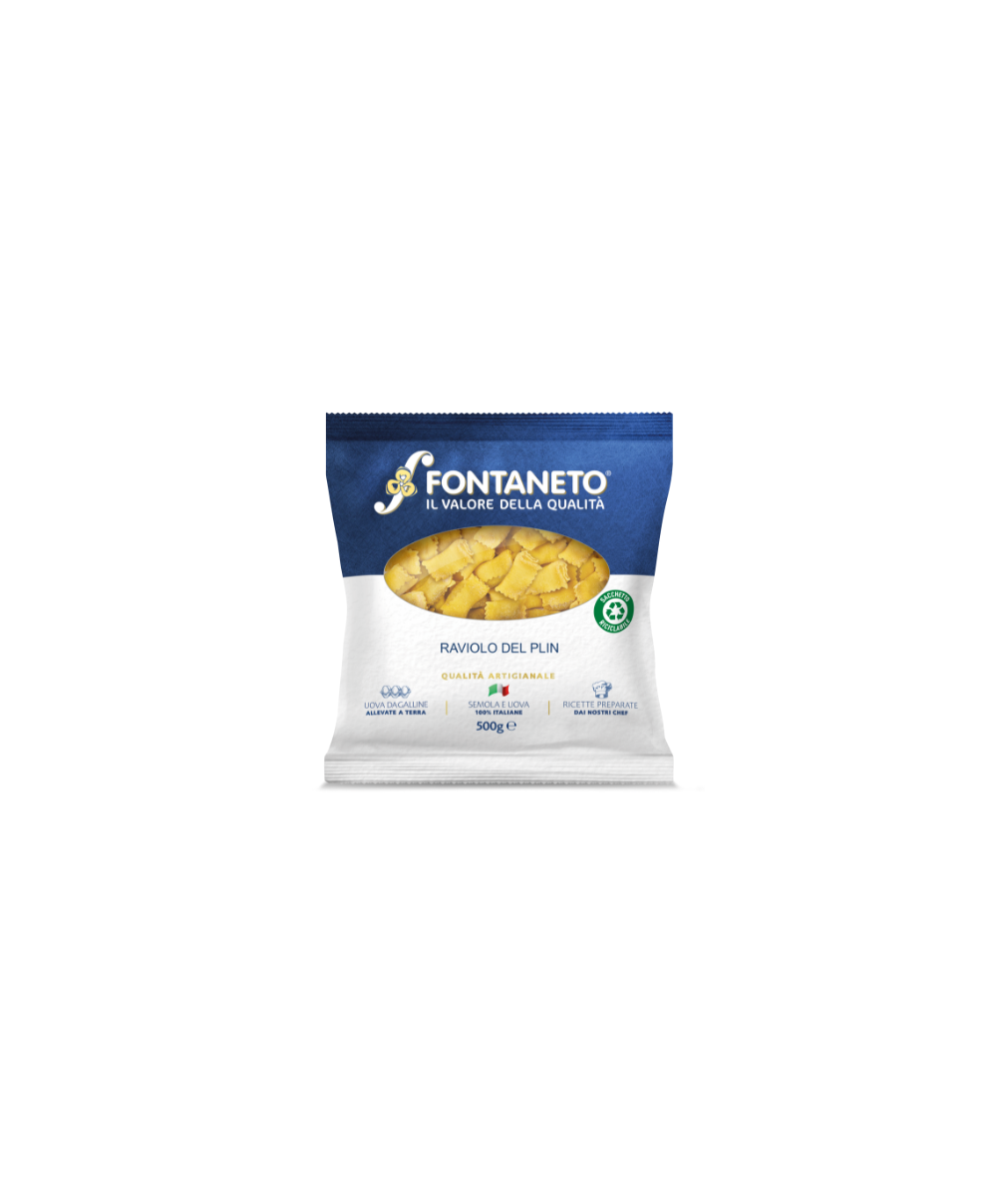 FONTANETO Ravioli Plin ripieno carne di maiale e manzo 4 x 500 g (166~ x 3 g 500 g) TMC 3 settimane - 5 minuti di cottura